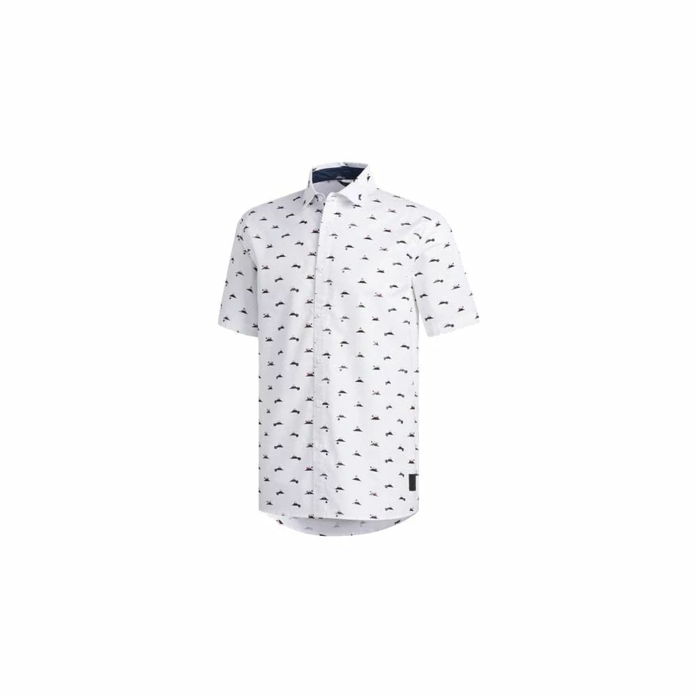 A rounded hem and all over print lend a lifestyle feel for easy transitions off the course.