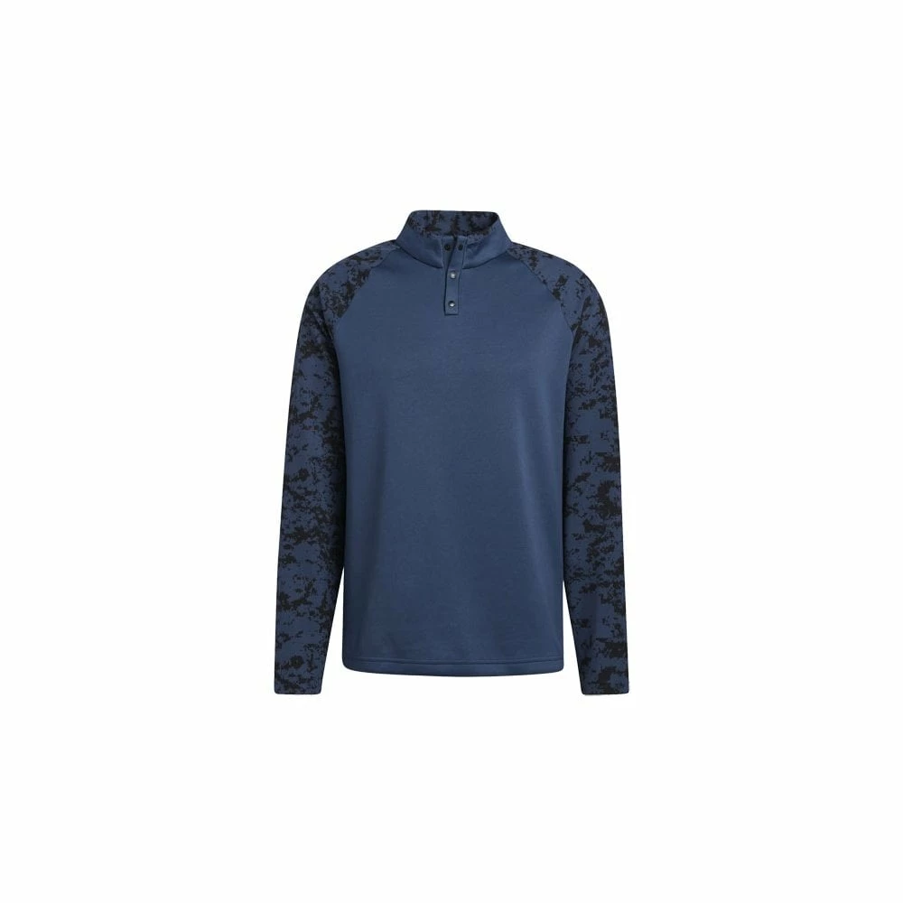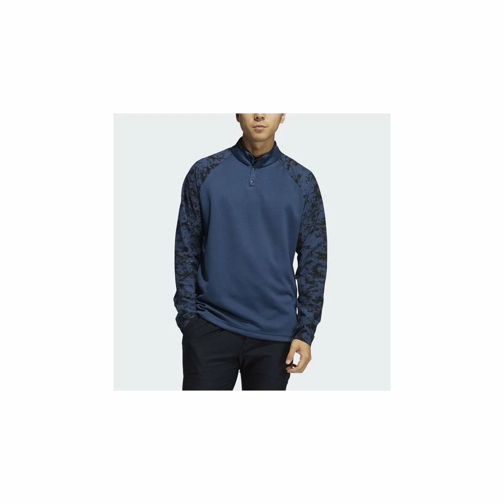 Layer up and play through in chilly weather. This adidas golf sweatshirt is made with a hybrid construction that keeps your core warm while lightweight material on the arms lets you swing freely. Camo details add modern flair.