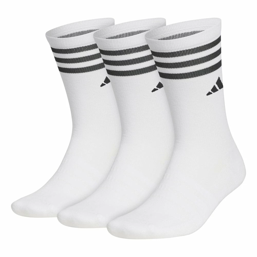 Bring some style to your stance. These crew-length golf socks feature 3-Stripes around the top and an adidas Badge of Sport to show off your brand love. Mesh on the top keeps feet ventilated through your round, and the compression instep adds support.