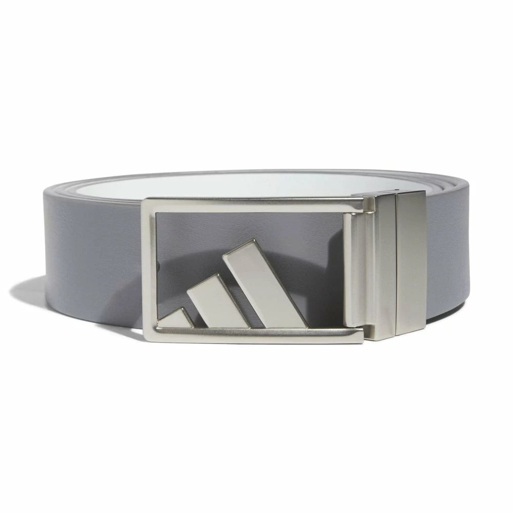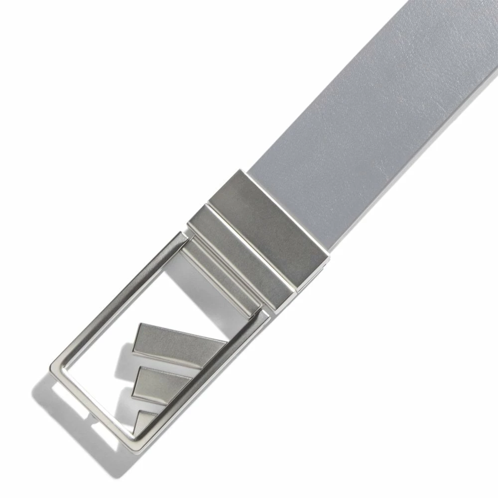 Play your round in 3-Stripes style. This adidas golf belt shows off your course style with synthetic leather and a brushed silver buckle. The reversible strap lets you change up the look. Cut it to a comfortable size for the perfect fit.