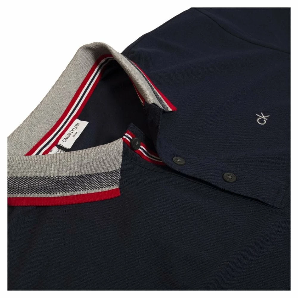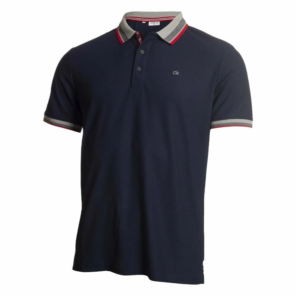SmartTec performance polo in a solid colour with a contrast Birdseye knit and mini stripe design on the knitted collar and cuffs. The contrast striped tape found on the inside placket, inside back neck and the side slits adds another design dimension. SmartTec – performance fabric in a new heavier weight fabric – 170gm Cool- extreme breathability, Dry- wicks moisture away from your body, Non-Iron/easy care technology, Anti-Bacterial – enhances odour management SPF UV Protection 30+ Three button placket with CK logo buttons Knitted collar and cuffs with Birdseye knit and contrast mini stripe detail Contrast striped tape used on inner placket, inside back neck, and side slits CK logo embroidered on left chest and CK golf woven tab to lower left side seam Modern fit for a slim line look Fabric: 100% SmartTec polyester pique