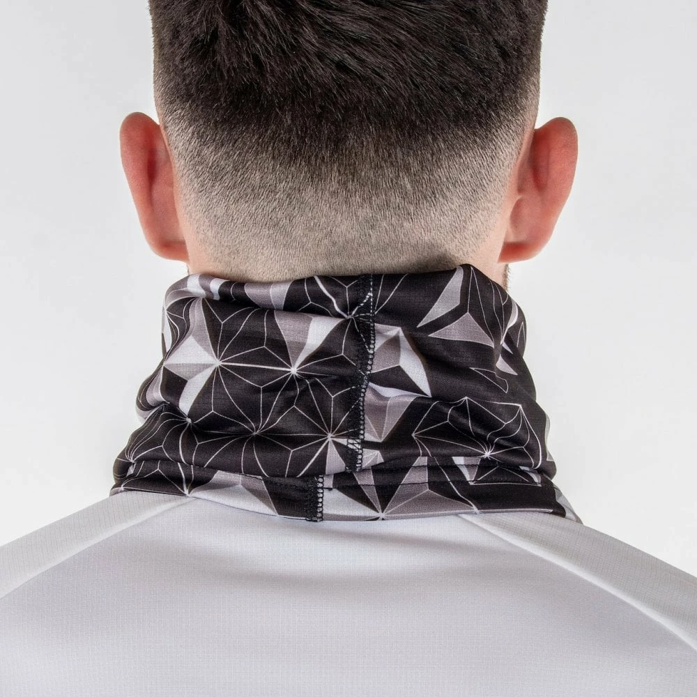 Printed neckwarmer inspired from the pyramide with the Galvin Green logo at the center front.
