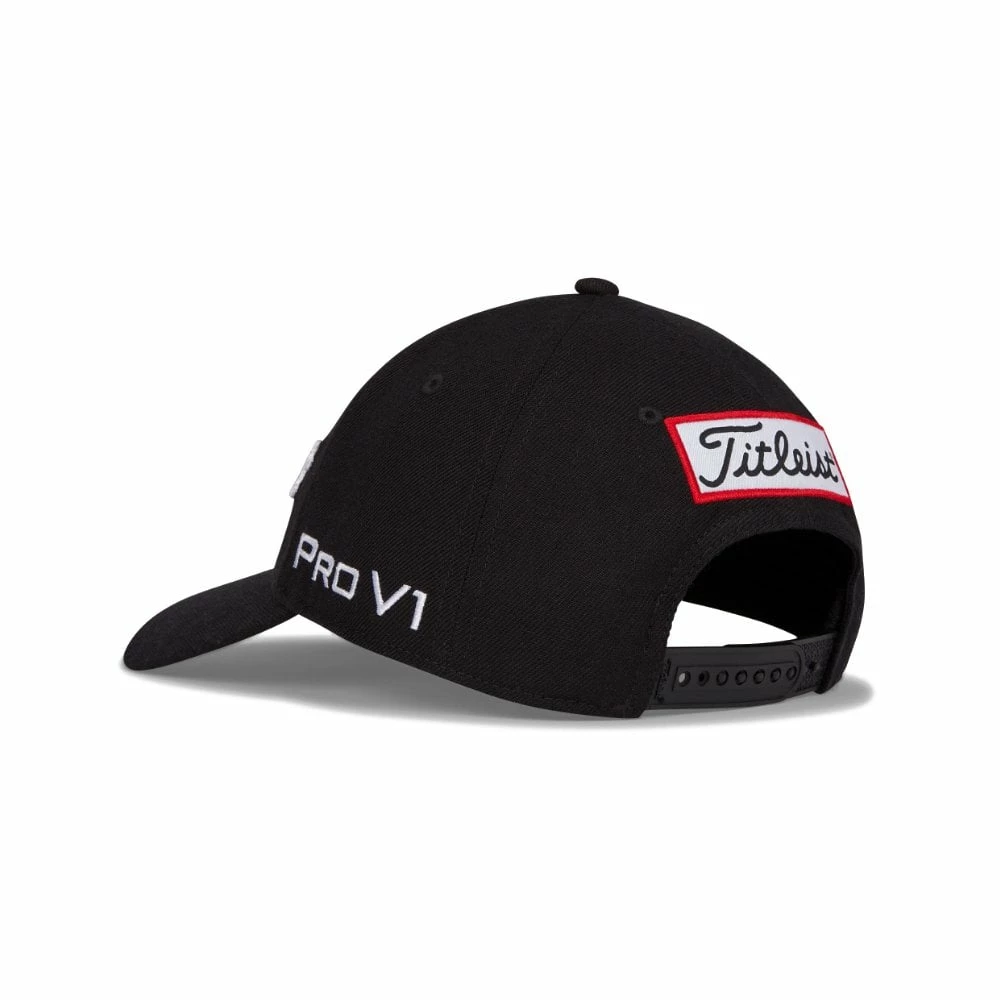 The Titleist Tour Classic Golf Cap is a 6-panel, pre-curved performance cap constructed from a blend of acrylic and polyester materials. Featuring an anti-microbial moisture wicking sweatband and adjustable snapback closure this hat also includes an embroidered tour logo on the backbill.